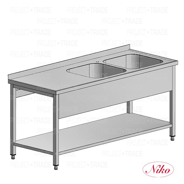HomeProductionSinks Sink with two basins, drain on the left side and bottom shelf, s/s