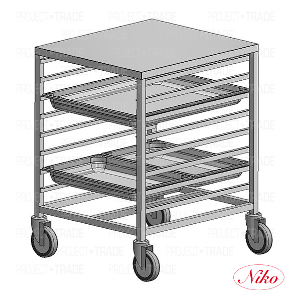 PočetnaProizvodnjaKolica Transportna kolica inox za 8xGN-2/1 ili 16xGN-1/1, s policom na vrhu
